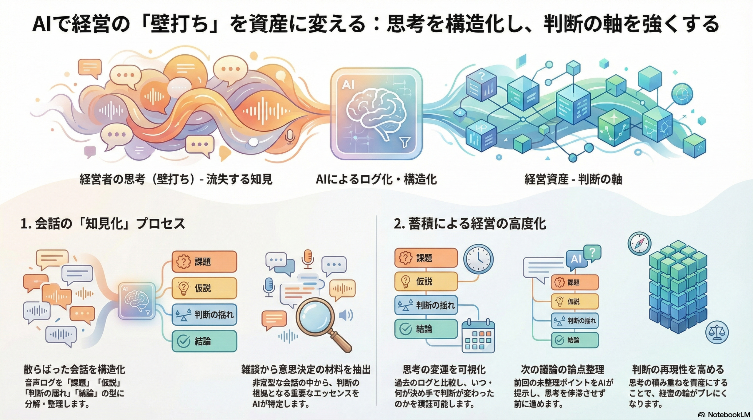 また、数字が苦手な経営者にとっても、AIは有効な補助役になります。専門用語を噛み砕いて説明したり、「この数字が続くと何が起きるか」といったシナリオを示したりすることで、判断材料を分かりやすく整理できます。