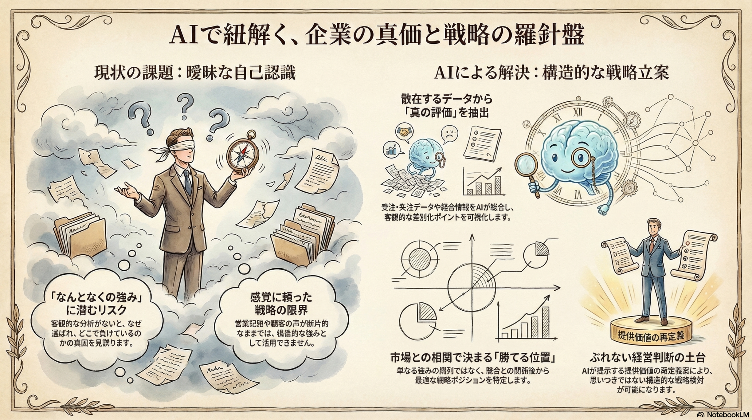経営判断の質は、選択肢の質で決まります。AIを活用して選択肢リストをつくることで、視野が広がり、納得感のある決断がしやすくなります。結果として、判断に振り回されない経営につながります。